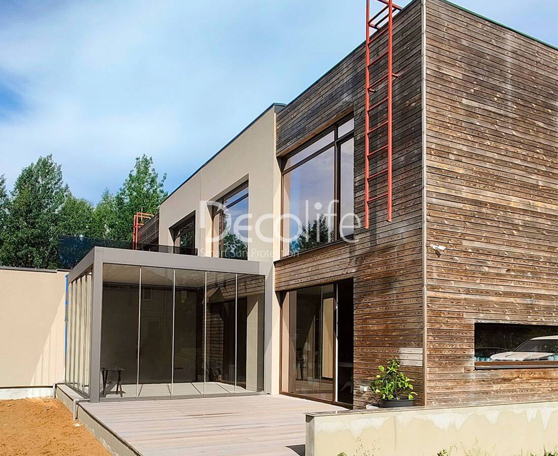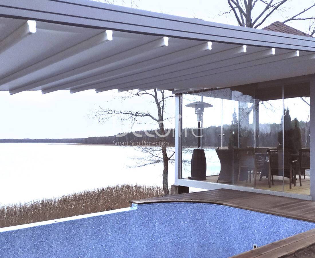 Пергола Decolife Bioclimatic B700-20С + Раздвижное безрамное остекление S100 - Минская обл., д. Светлый путь