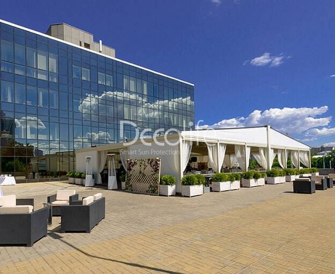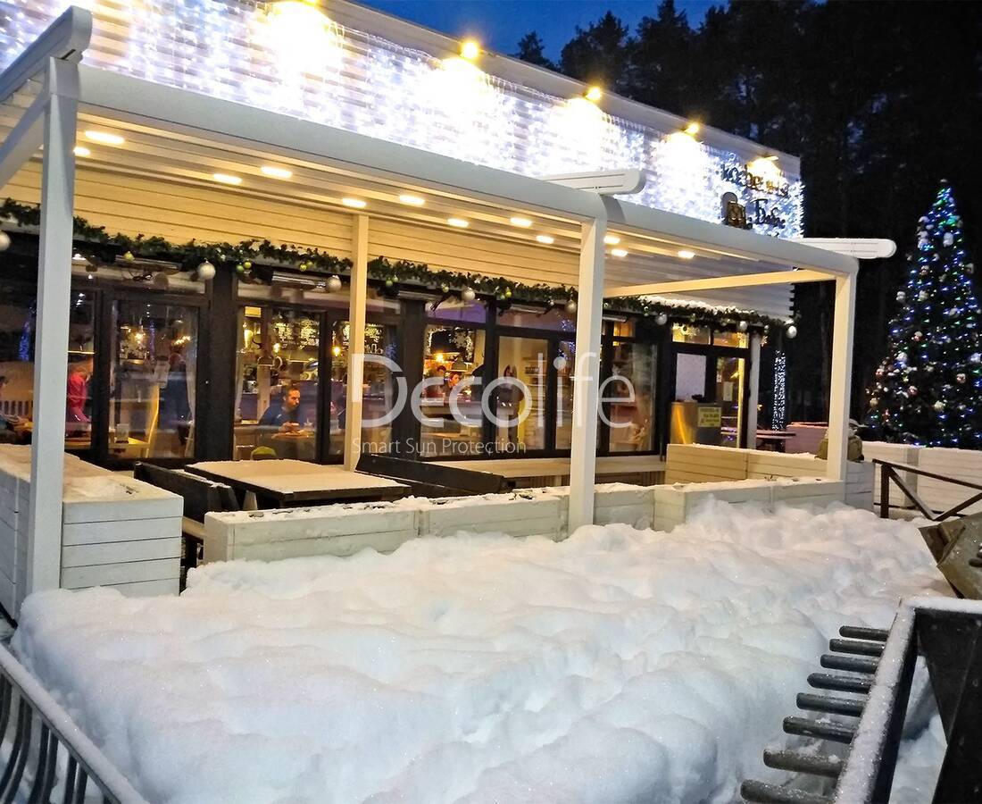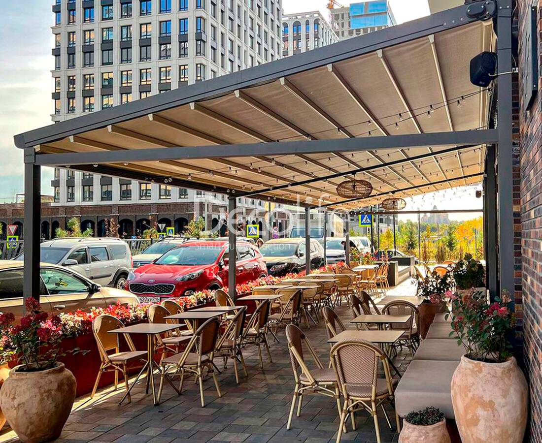 Раздвижная пергола Decolife Basic&Pro New Twin со стальной фермой, кафе Москва City - г. Москва