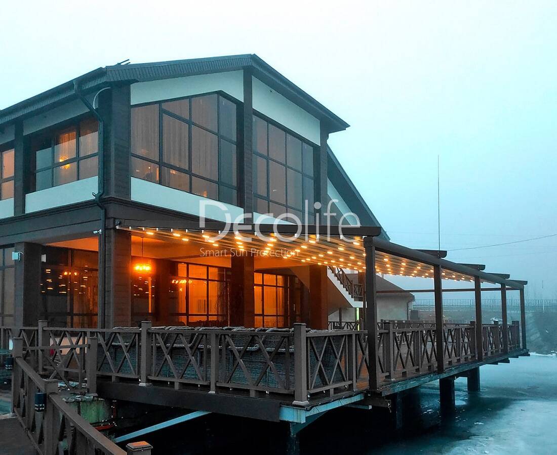 Тентовая пергола Decolife Basic&Pro New, объект реализован партнером ООО "СТЕЛЛ МС" - г. Казань, "Begin Cafe"