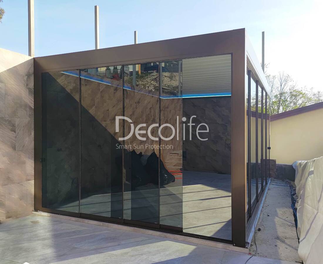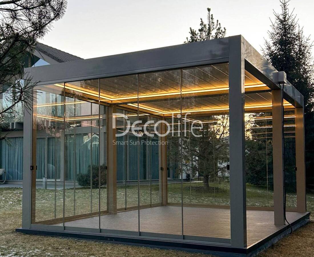 Пергола Decolife B600 PIR + Панорамное остекление S500, реализовано партнером "ООО Люкс Террас" - г. Москва
