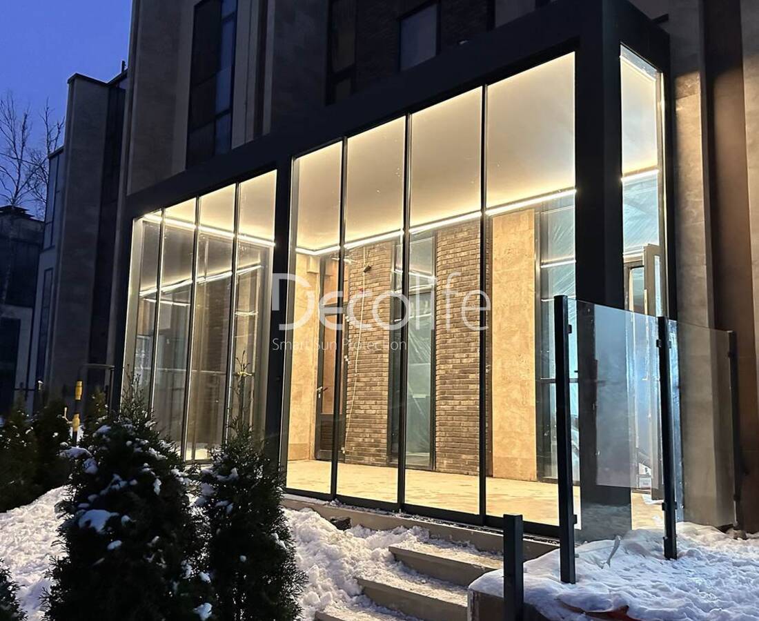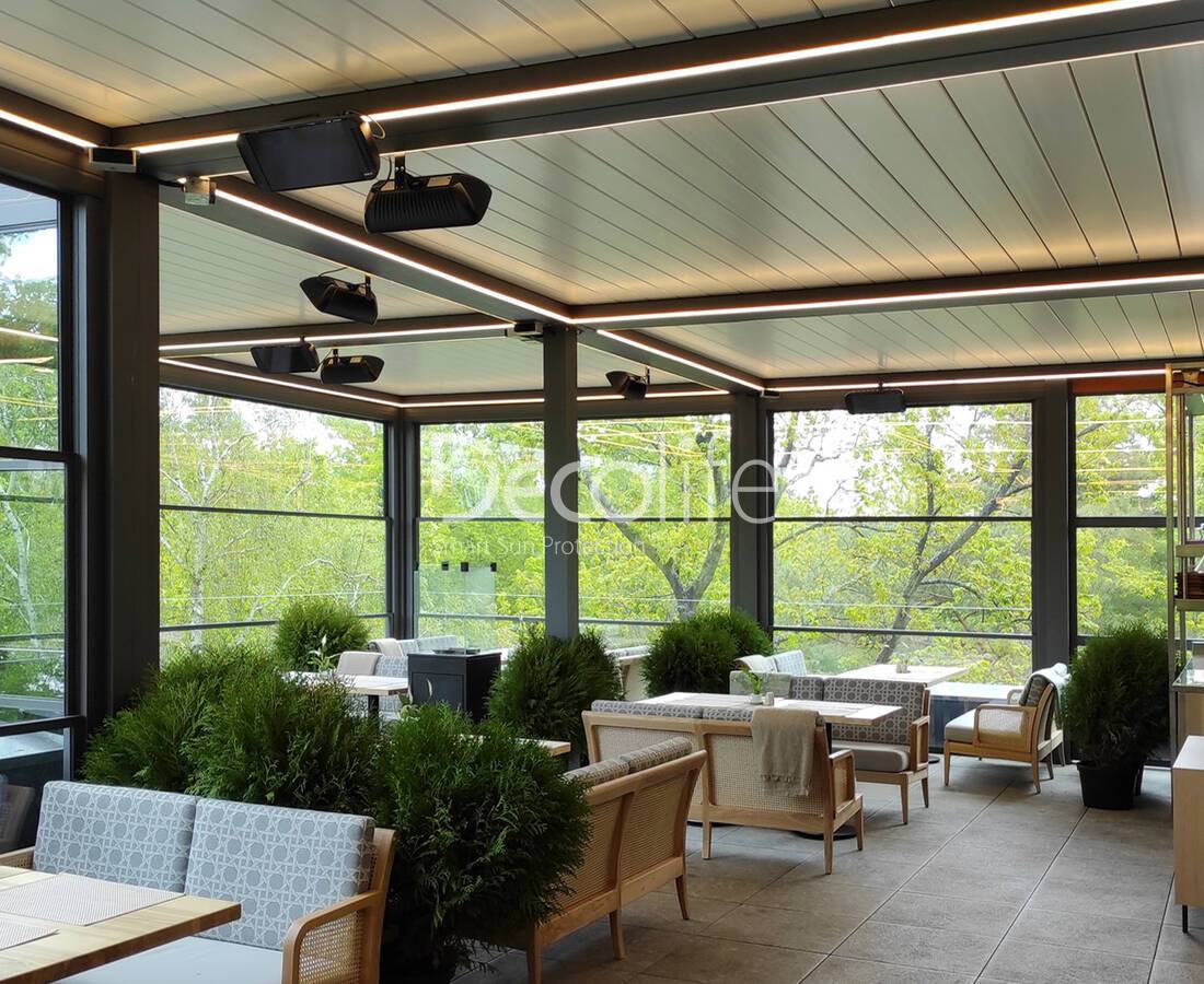 Пергола Decolife B600 PIR + Подъемное остекление W700 с терморазрывом (тёплая серия), реализовано партнером "TENT VERTEX" - г. Алматы, ЖК "Esentai City"