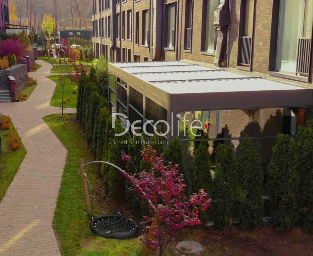 Пергола биоклиматическая Decolife B500-20П + Гильотинное остекление W500 - г. Светлогорск